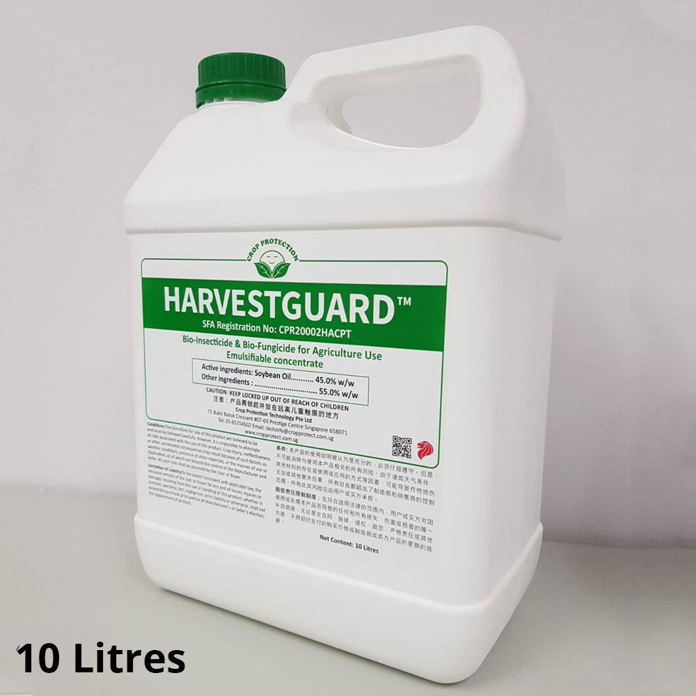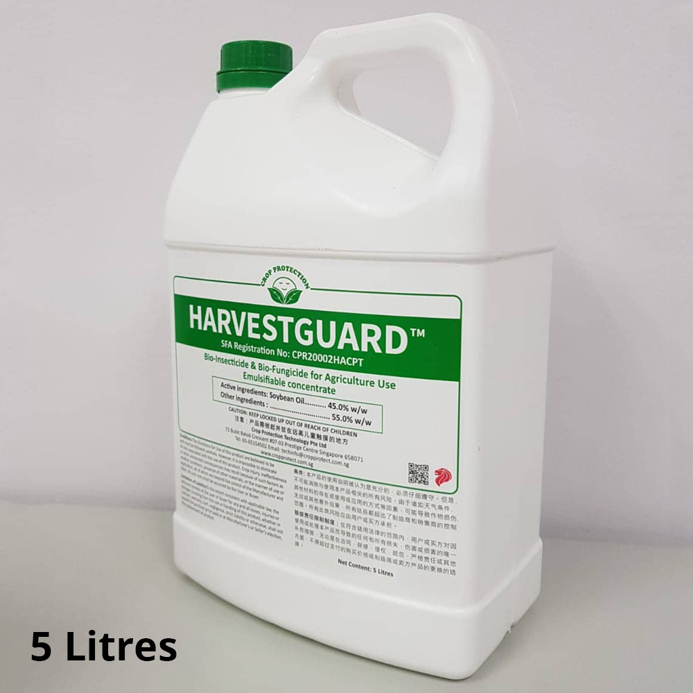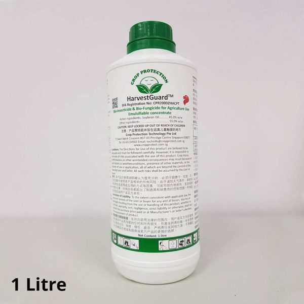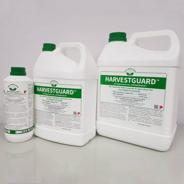HarvestGuard™ has a proprietary formulation containing soybean oil emulsion that controls insects and pathogen primarily through a physical mode of action.